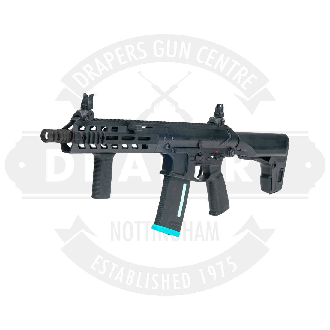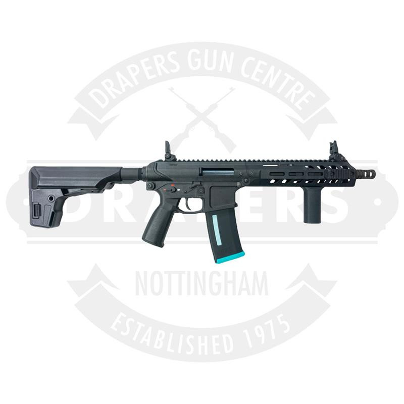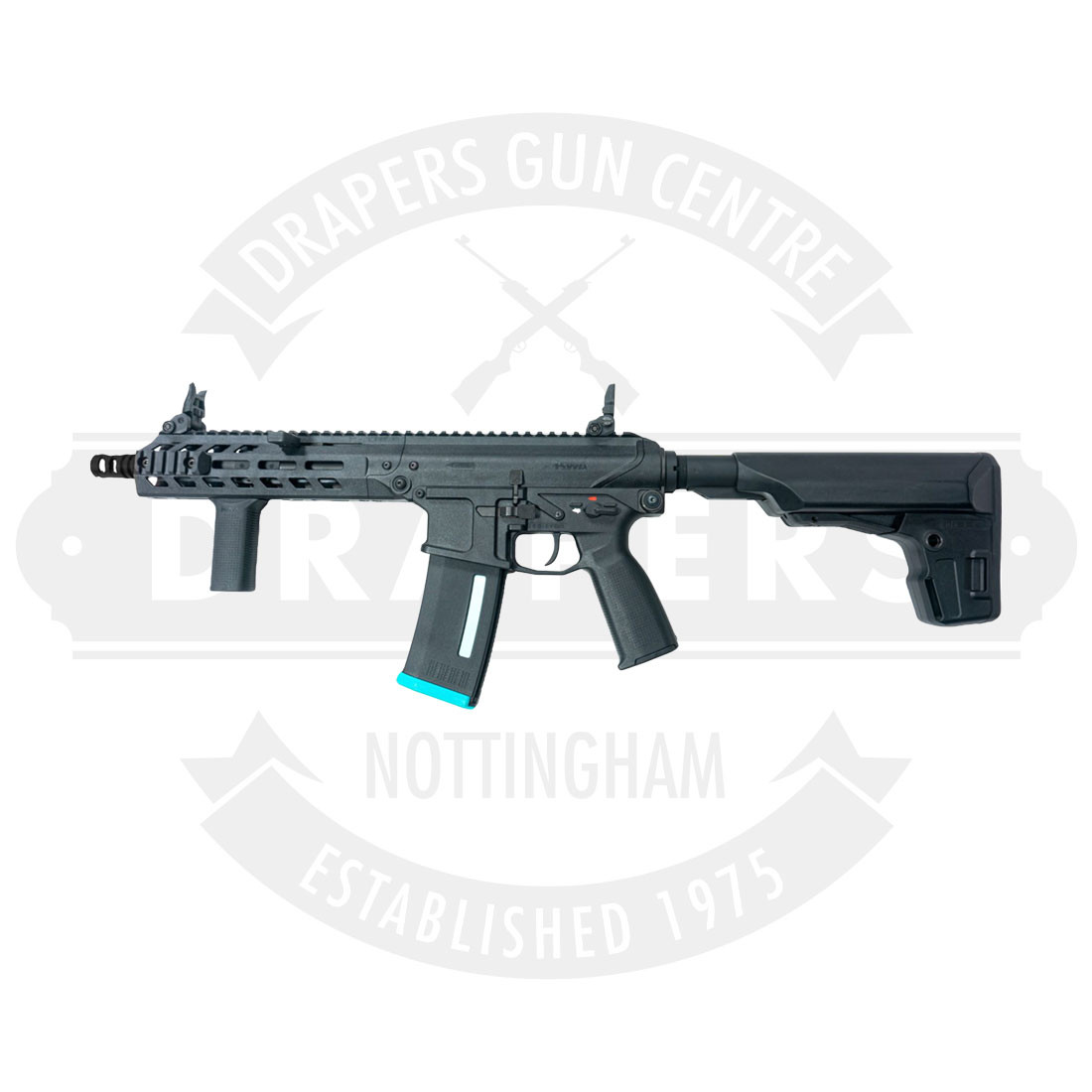 The side charging handle allows for convenient hop up adjustment and the integrated pistol grip is optimized for maximum ergonomics. The KO:EVE-9 comes with KOs new slim line vertical grip and maintains a sleek look with the PTS stock. PTS Enhance Polymer Sights, two port muzzle brake, ambi fire controls, and optional quick detach sockets front and rear round out the external package. Internally, the KO:EVE-9 shares the same 2.5 VPS gearbox as the TK.45c, Ronin T6, QRF Mod Series, and Ronin 47. Install your favorite aftermarket electronic trigger group, and you have an ultra-responsive and lightweight polymer AEG with legendary KWA performance.
