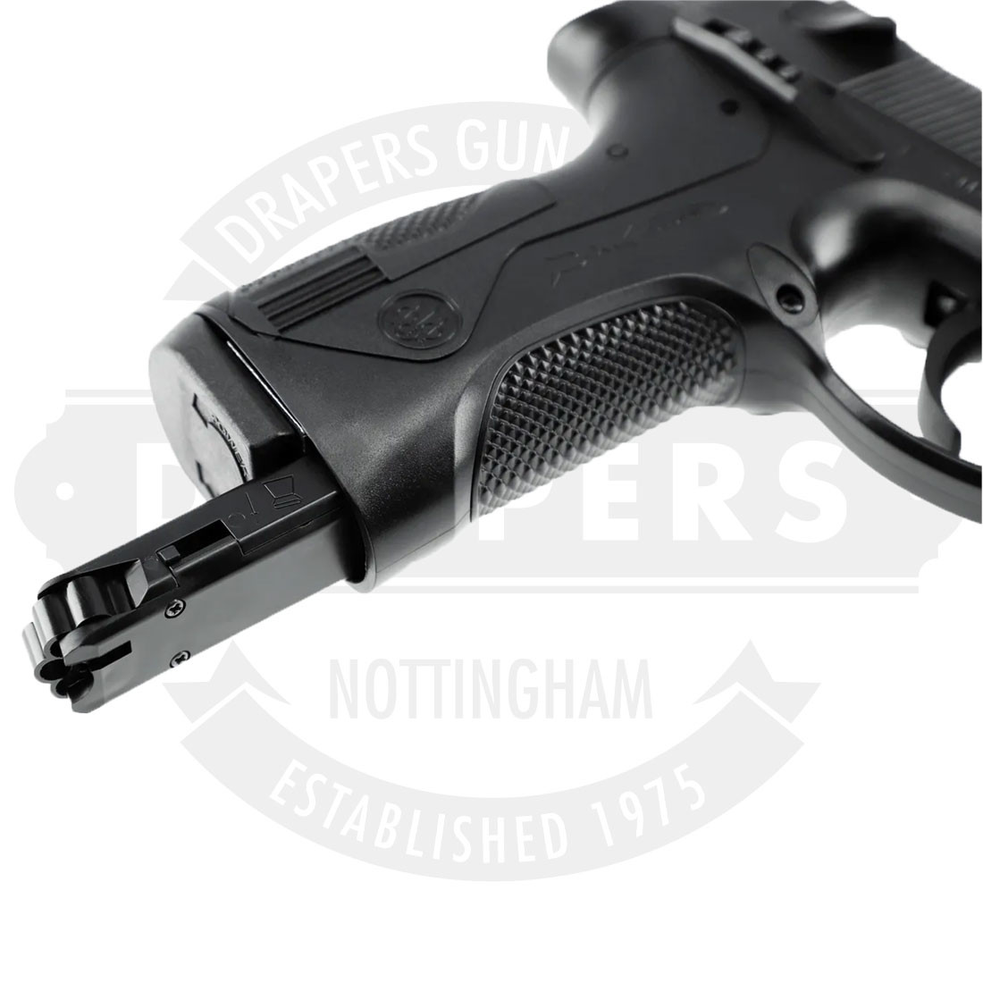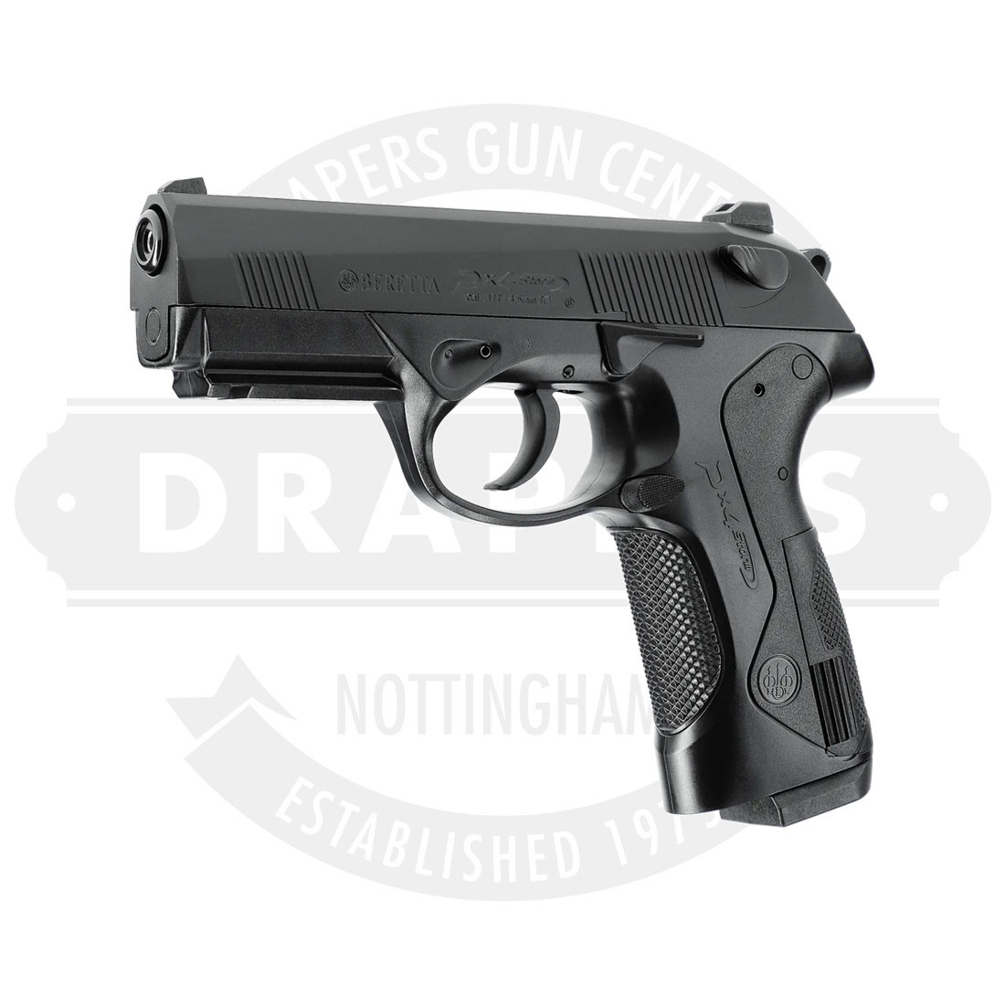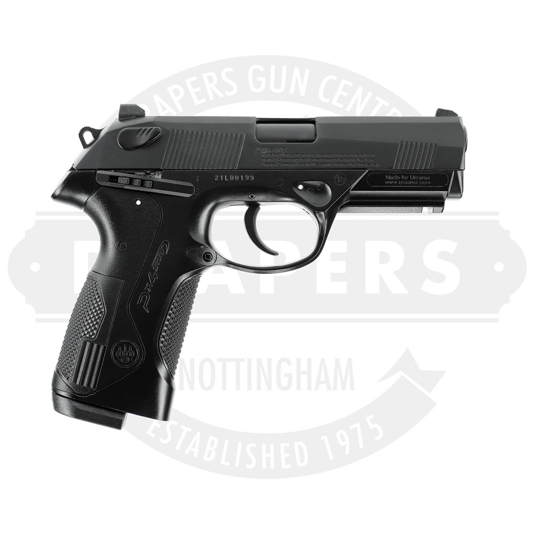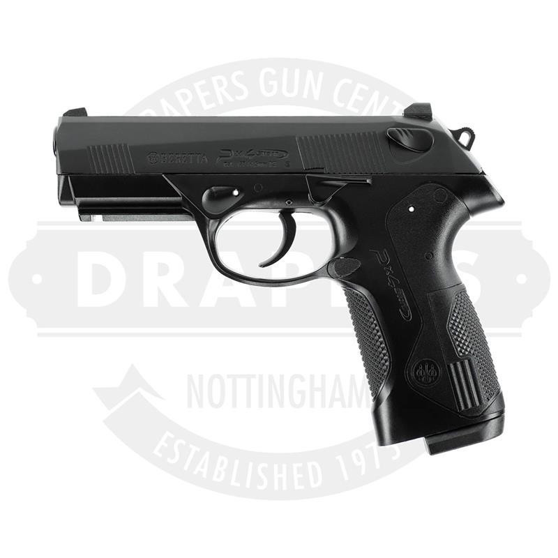 Umarex Beretta Px4 Storm Type F Full Size 9 mm Pistol offers double and single action and has a 17-round firing capability. The pistol features a locked breech with a rotating barrel system, a slide-mounted decocker and a manual safety. Interchangeable back straps and magazine release.