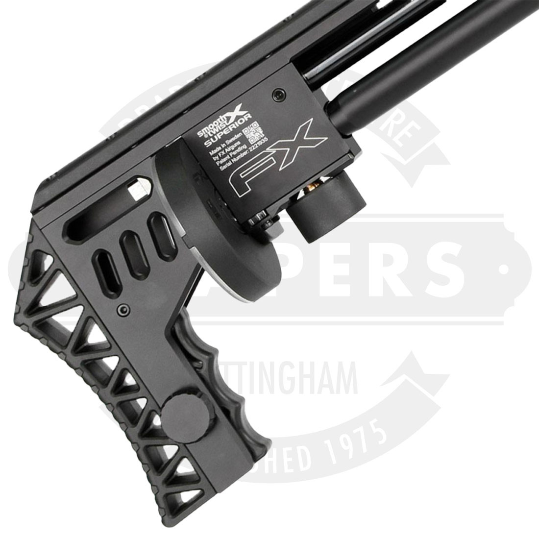 To further enhance the performance and shooting experience, FX have improved the overall rigidity of the Impact M4 by designing a new top plate that is much stronger and thicker which brings more strength and rigidity throughout the entire platform. The new QS trigger unit and top rail introduced have increased the comfort of shooting the Impact, as well as the all new FX grip that is more defined and comfortable to grip to.