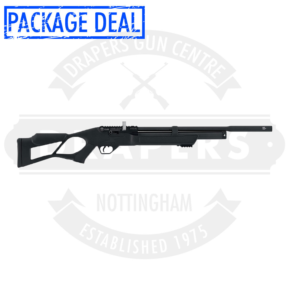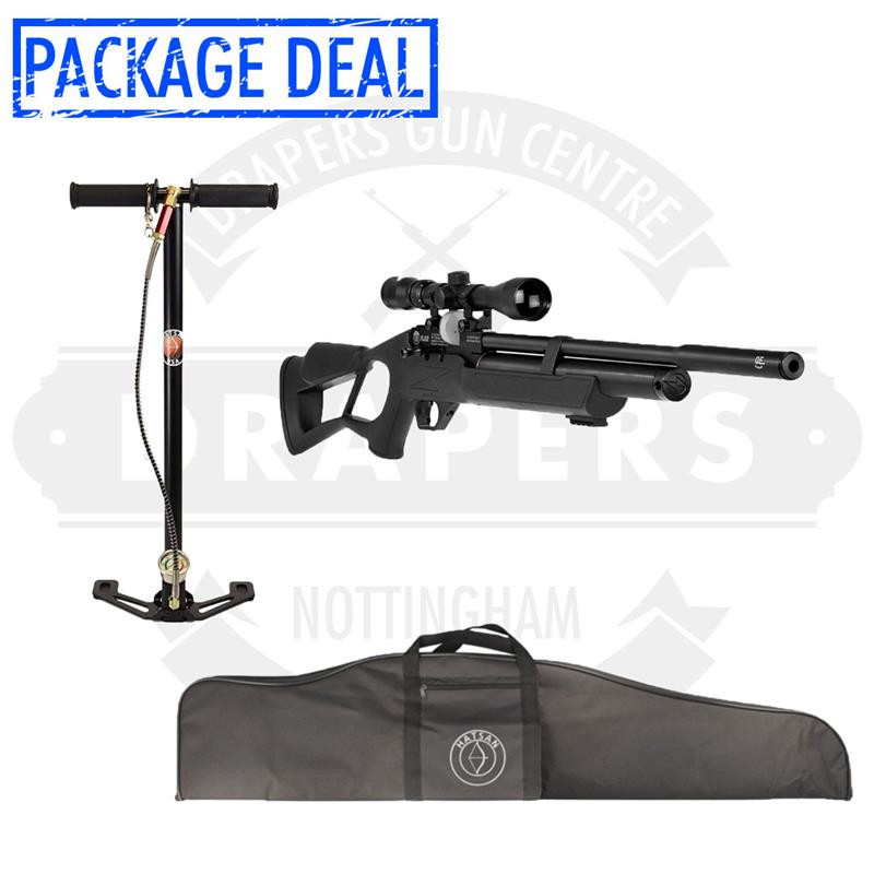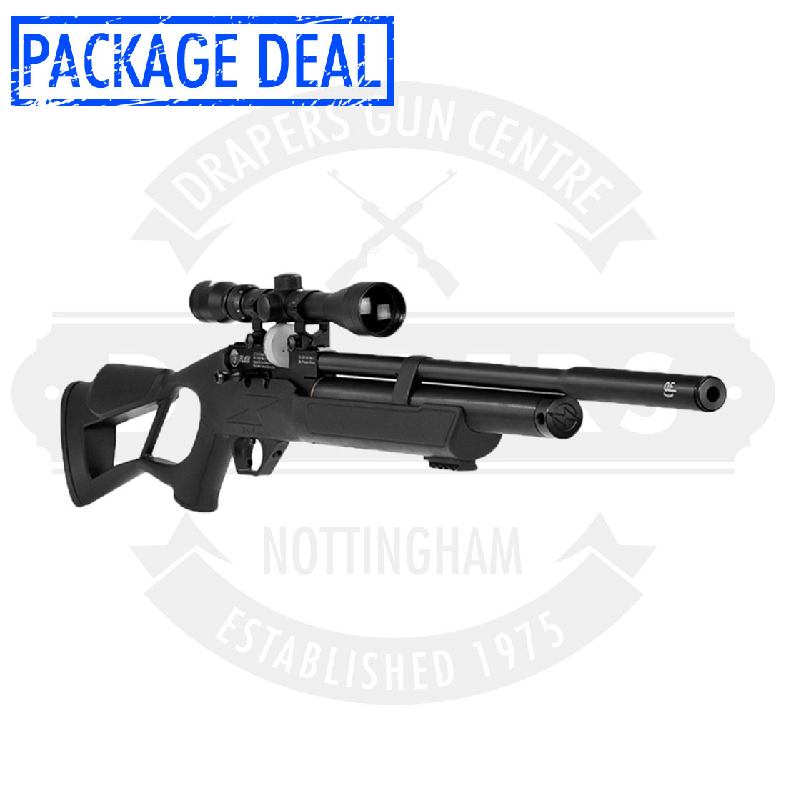 Package Includes: Rifle, Scope, Pump, Bag, Tin of 500 Pellets.