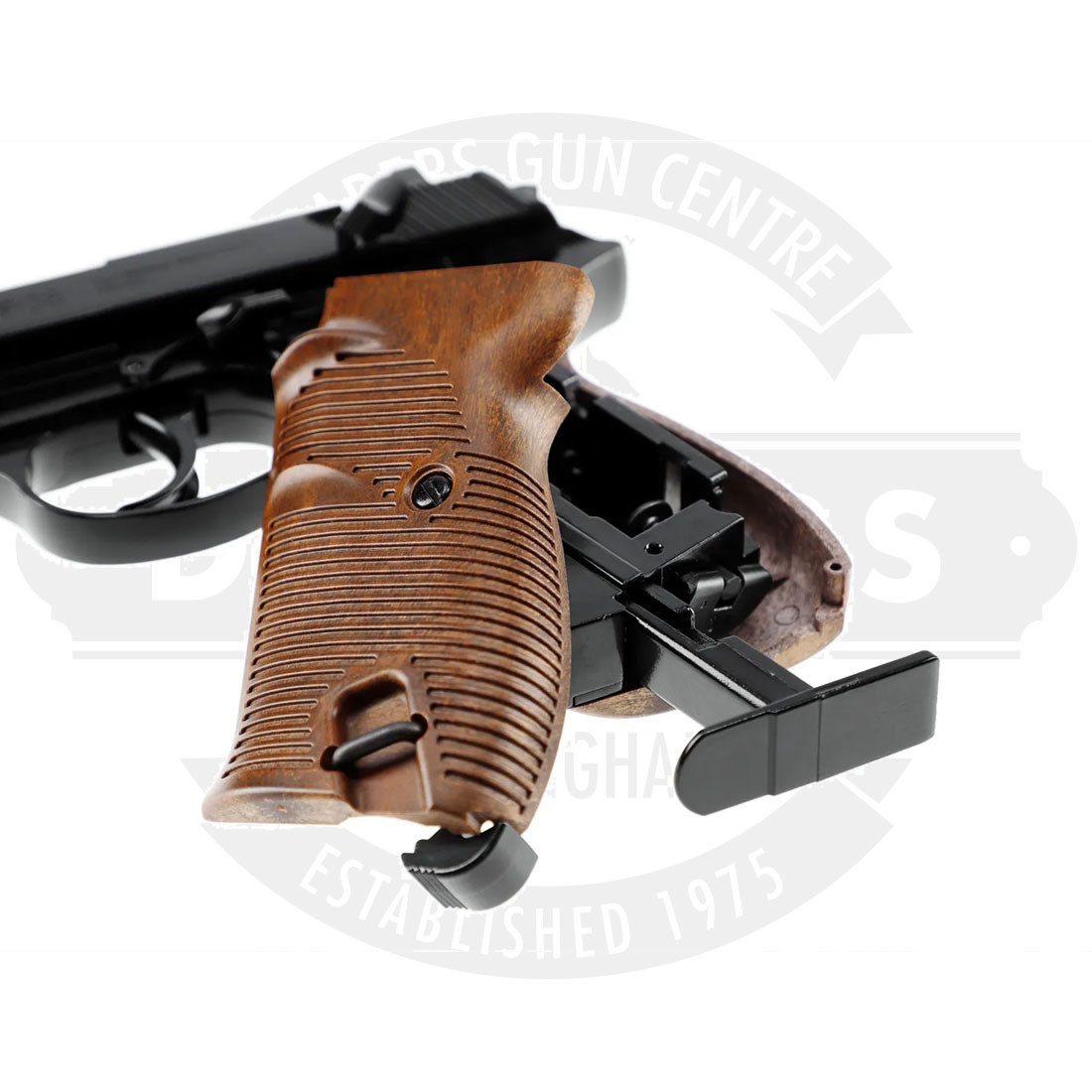 The P38 replica has a number of interesting details. Technically interested owners will like the handling and stripping, which are just like in the original. The all-metal design and blowback effect also provide a realistic feeling. -